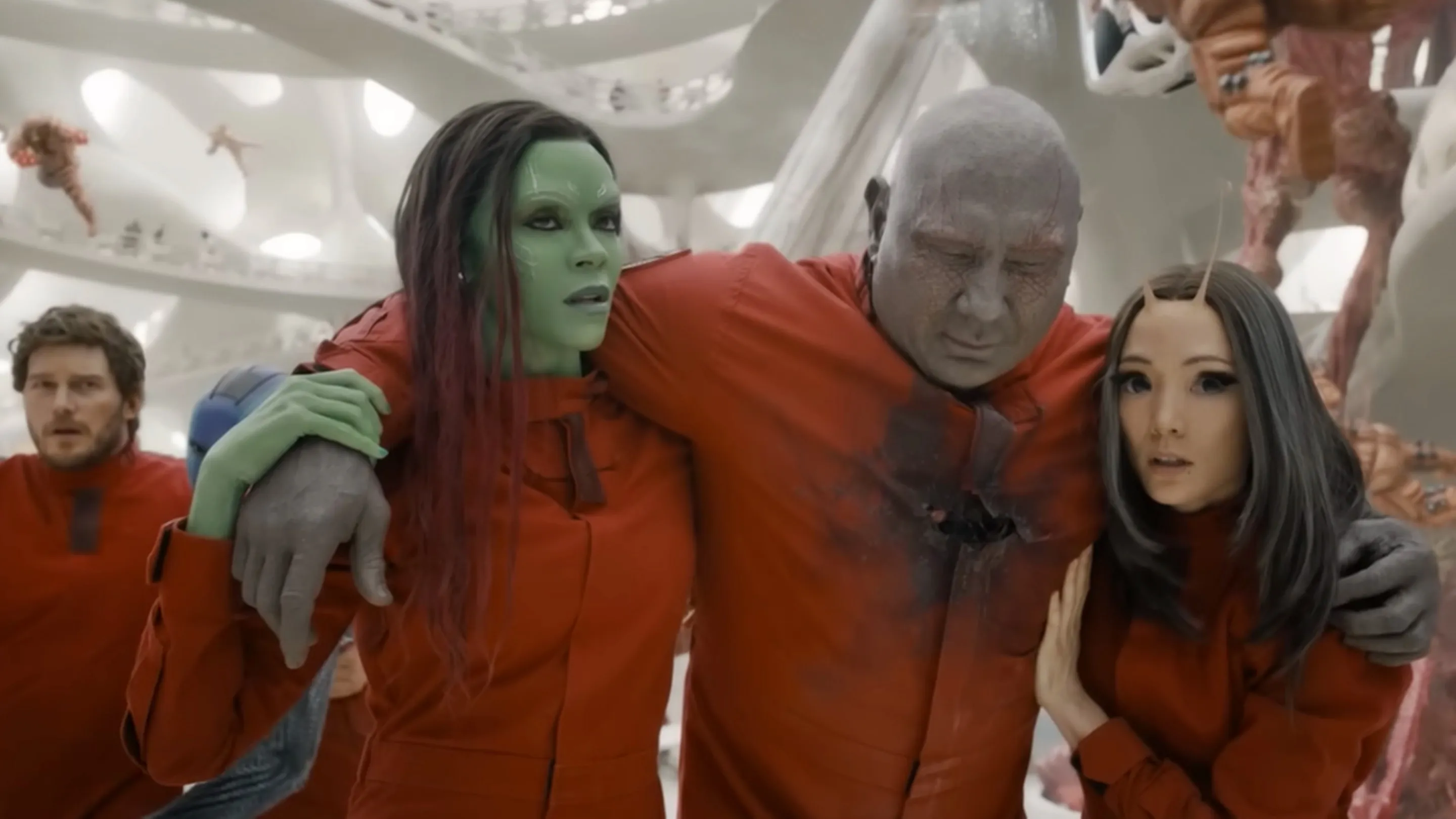REPARTO Chris Pratt, Zoe Saldaña, Dave Bautista, Karen Gillan, Pom Klementieff, Vin Diesel, Bradley Cooper, Sean Gunn, Chukwudi Iwuji, Will Poulter
